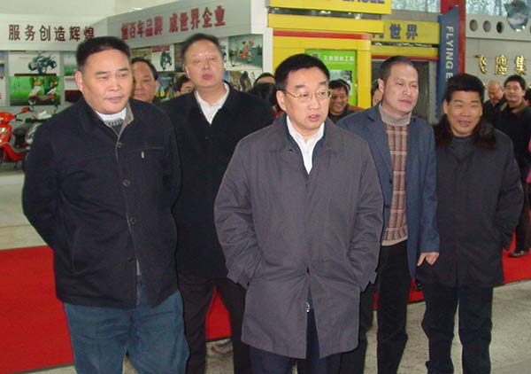 2001年12月,時(shí)任浙江省委書記張德江在永康市委書記等領(lǐng)導(dǎo)的 陪同下視察中國科技五金城 |