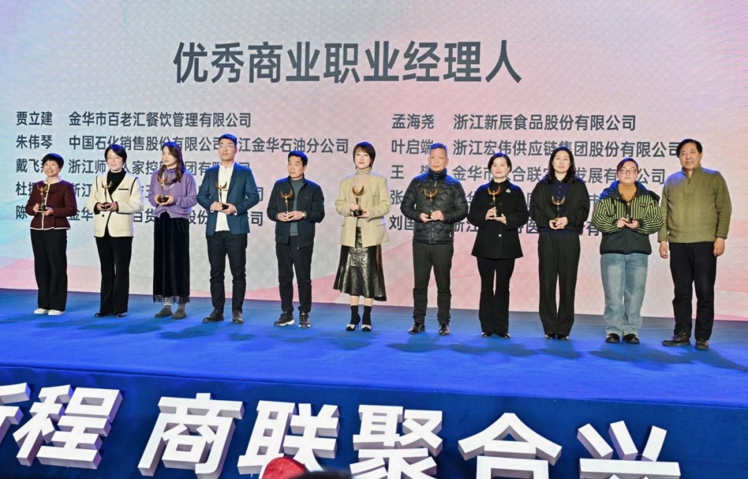1月15日,金華市商業(yè)聯(lián)合會(huì)舉行了四屆三次會(huì)員大會(huì)暨創(chuàng)新轉(zhuǎn)型典型示范優(yōu)秀企業(yè)和個(gè)人授牌典禮。五金城集團(tuán)保安公司黨支部書記、董事長(zhǎng)、經(jīng)理杜擁軍榮獲“優(yōu)秀商業(yè)職業(yè)經(jīng)理人”稱號(hào),對(duì)外經(jīng)濟(jì)貿(mào)易有限公司經(jīng)理邱曉云、會(huì)展公司綜合辦公室主任應(yīng)凱瑋榮獲“商貿(mào)服務(wù)之星”稱號(hào)。