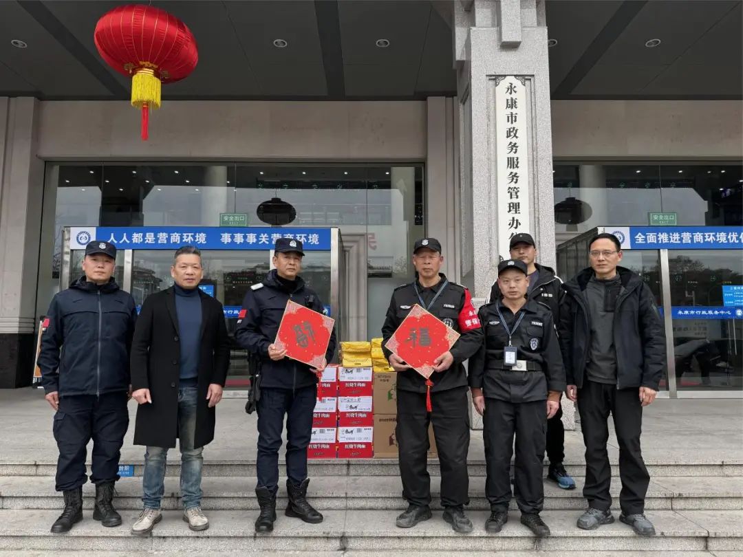 春節(jié)將至,年味漸濃。為大力弘揚(yáng)中華優(yōu)秀傳統(tǒng)文化,營(yíng)造吉祥如意的春節(jié)氛圍,近日,永康市保安服務(wù)有限公司開展“新春走基層”送溫暖活動(dòng),向在近97個(gè)服務(wù)項(xiàng)目中默默付出的保安員同胞表示關(guān)心關(guān)懷。五金城集團(tuán)黨委委員、副總經(jīng)理呂岱青,市保公司黨委書記、董事長(zhǎng)、經(jīng)理杜擁軍,工會(huì)主席胡少波及安保部相關(guān)工作人員參加活動(dòng)。